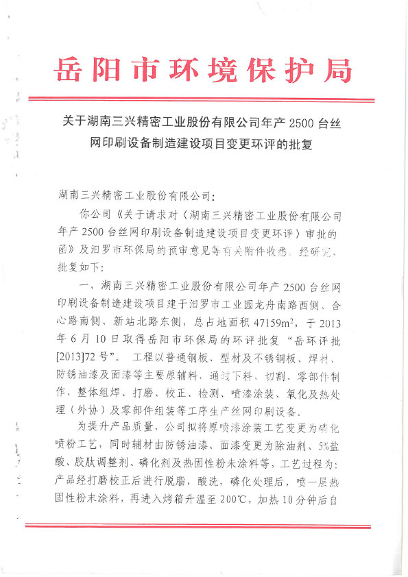 三興絲網(wǎng)印刷設備制造建設項目批復報告